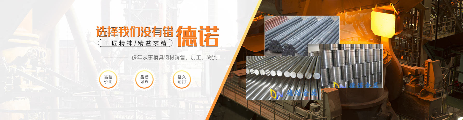 東莞市德諾金屬鋼鐵有限公司成立于2010年,立足于珠江三角洲,是一家集多家進口優(yōu)質(zhì)模具鋼材銷售批發(fā)及機加工服務于一體的大型企業(yè)。公司投大量資金與世界著名鋼廠簽立優(yōu)特鋼經(jīng)銷權(quán),銷售國內(nèi)著名鋼廠不銹鋼產(chǎn)品 經(jīng)銷國際著名鋼廠進口產(chǎn)品。